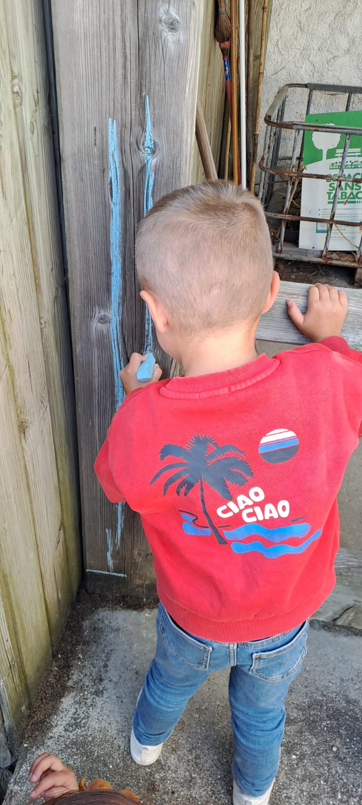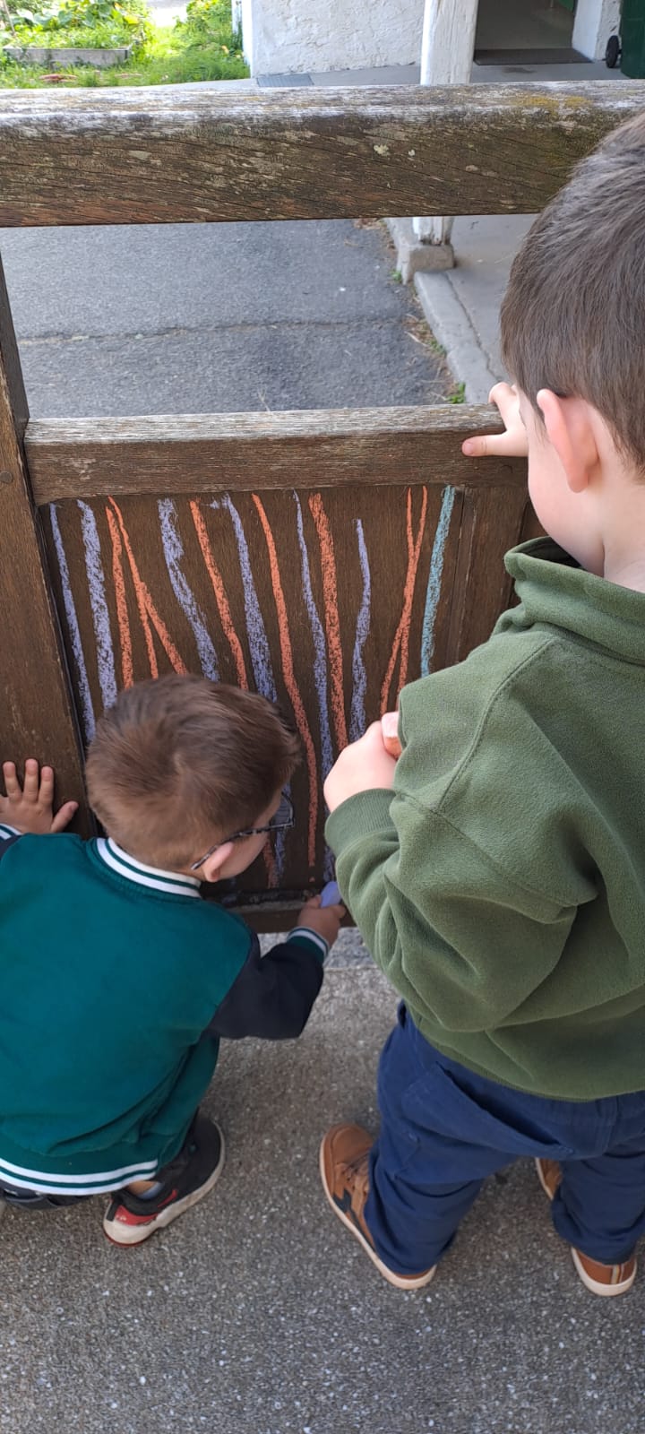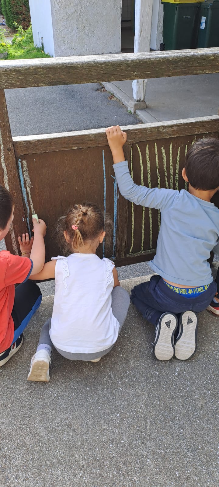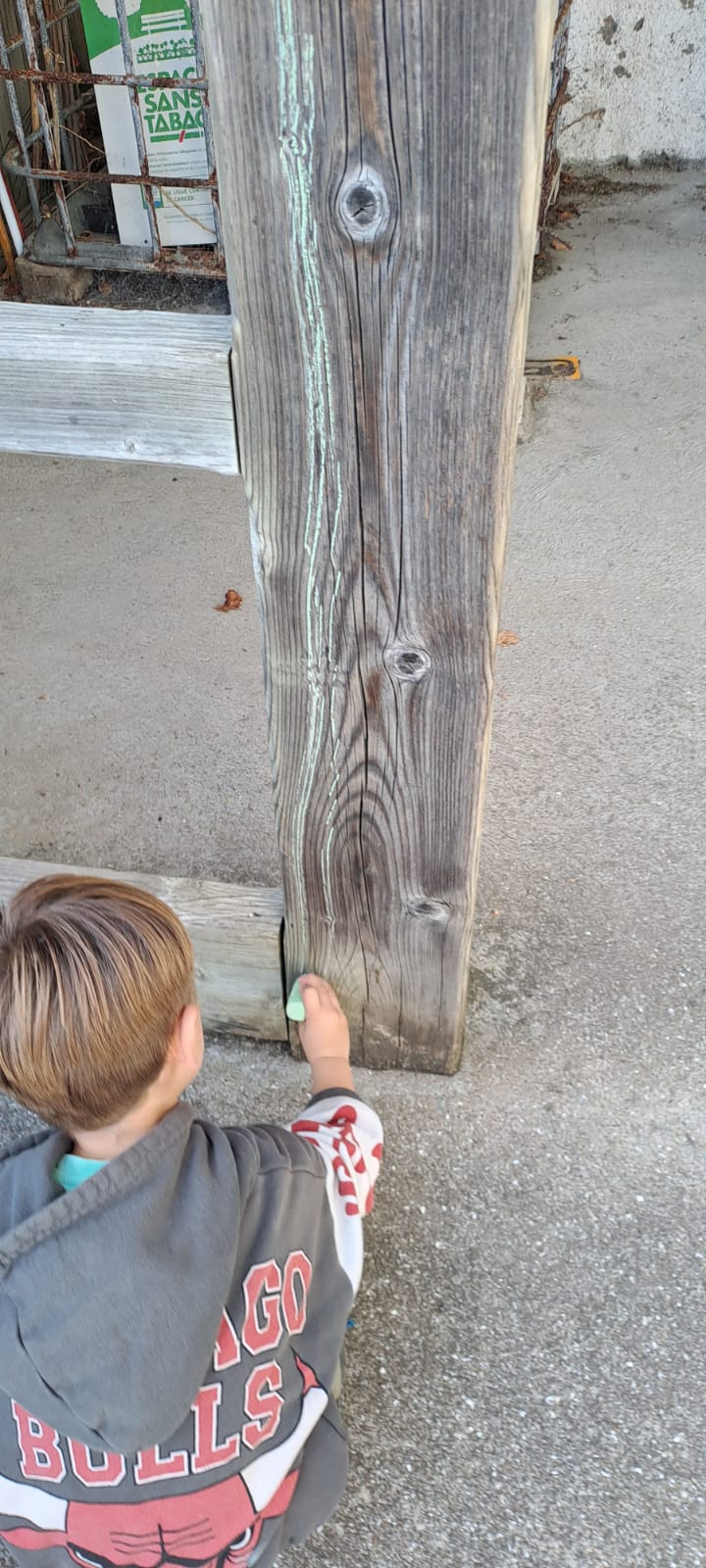 Nous avons appris à tracer des lignes verticales sur des supports verticaux de la cour.