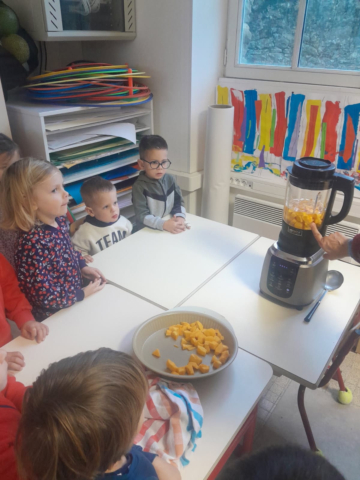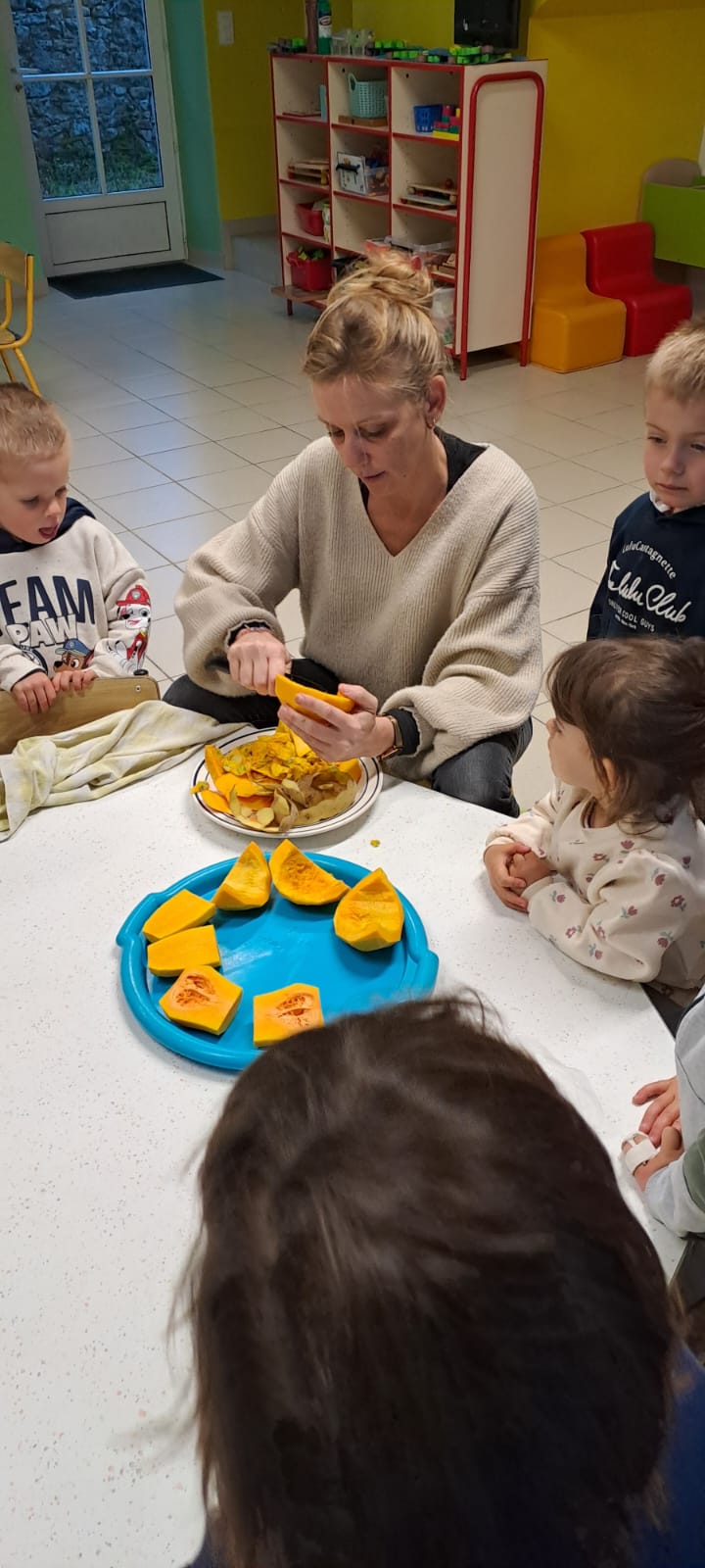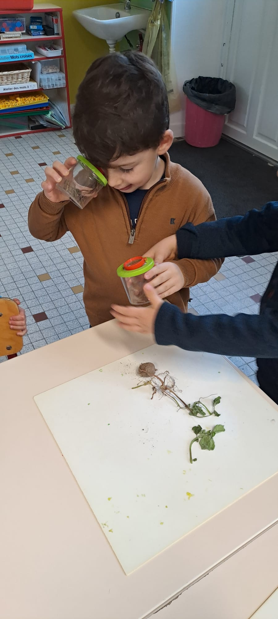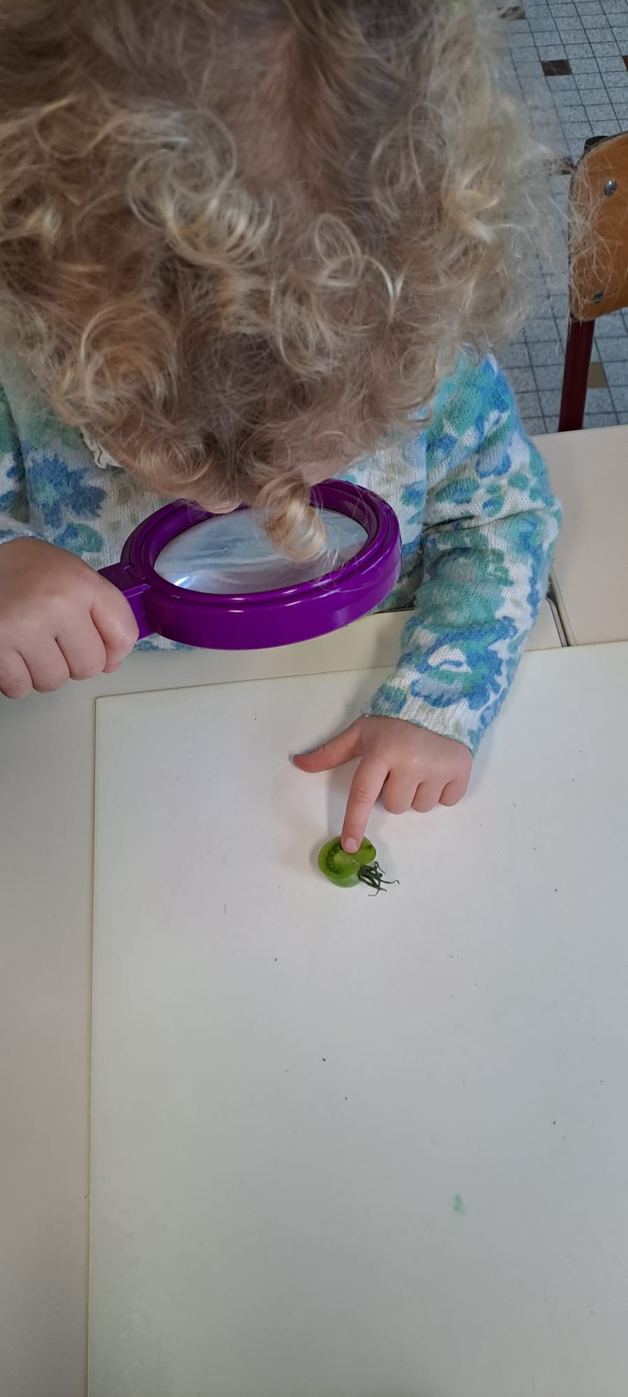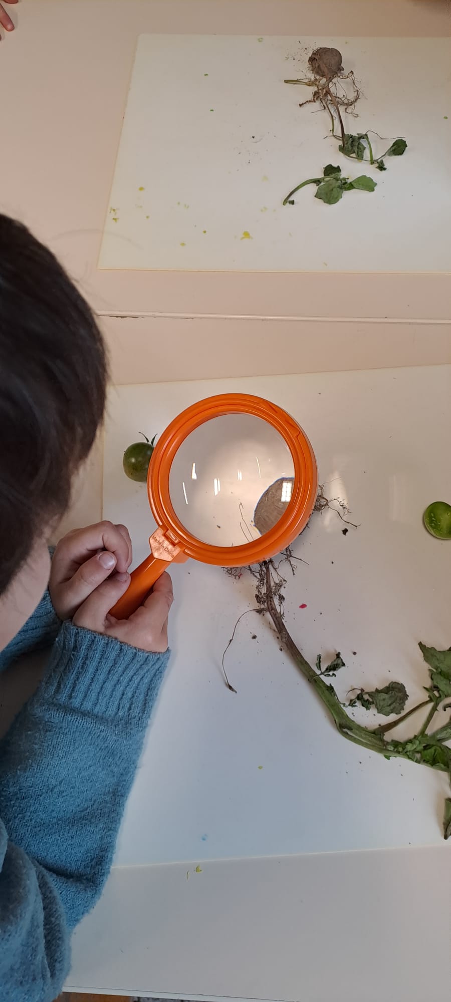 Nous avons ramassé les derniers légumes du jardin pour faire une bonne soupe….potimarron, butternut et pommes de terre. Nous avons utilisé les loupes pour observer les légumes.