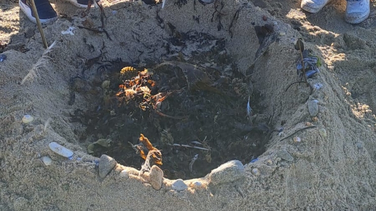 Les PS ont tracé leur initiale et des ronds dans le sable.